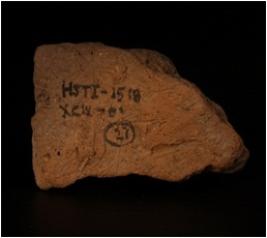 | Description / विवरण | Fragment of Terracotta object of piece of wall decorated with concrete inlaid on surface. |