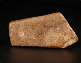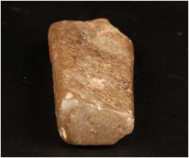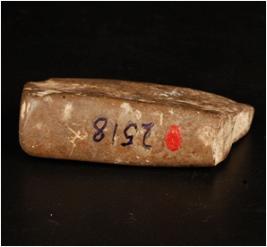 | Description / विवरण | Flat dressed chert slab with smooth surface and flat base. Broken at top with thick base. Grey in colour. |