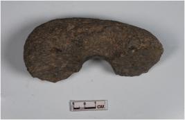 | Description / विवरण | A broken stone door jam with circular section. |