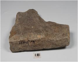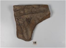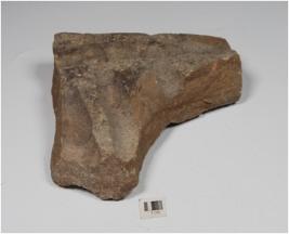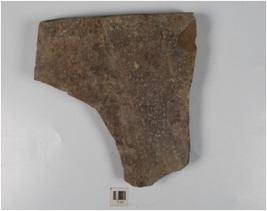 | Description / विवरण | A fragment of stone tile with deep lines on one side of the surface. |
