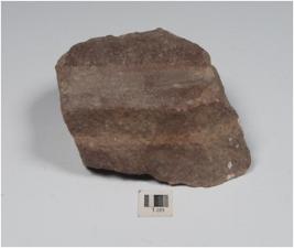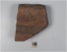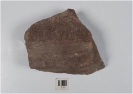 | Description / विवरण | A fragment of stone tile with deep lines on both side of smooth and polished surface. |