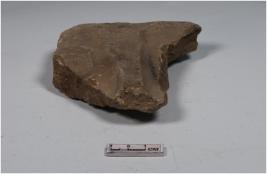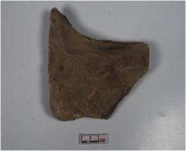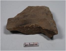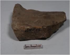 | Description / विवरण | A fragment of a stone tile with deep lines and smooth surface. |