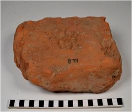 | Description / विवरण | A fragment of a terracotta brick with rectangular in shape having finger impression and coarse fabric sturdy texture. |