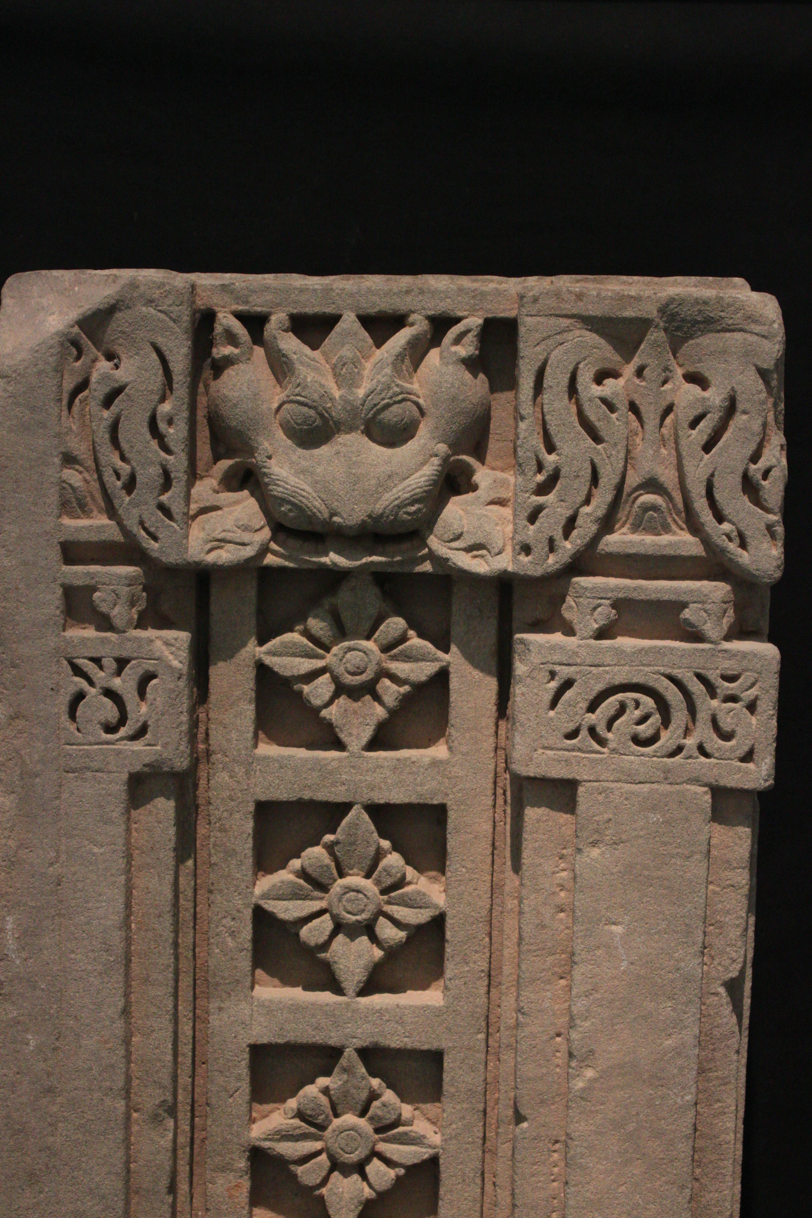 It is an architectural member of some ancient building. Front is decorated beautifully in the middle and upper portion is carved with vyalmukha.