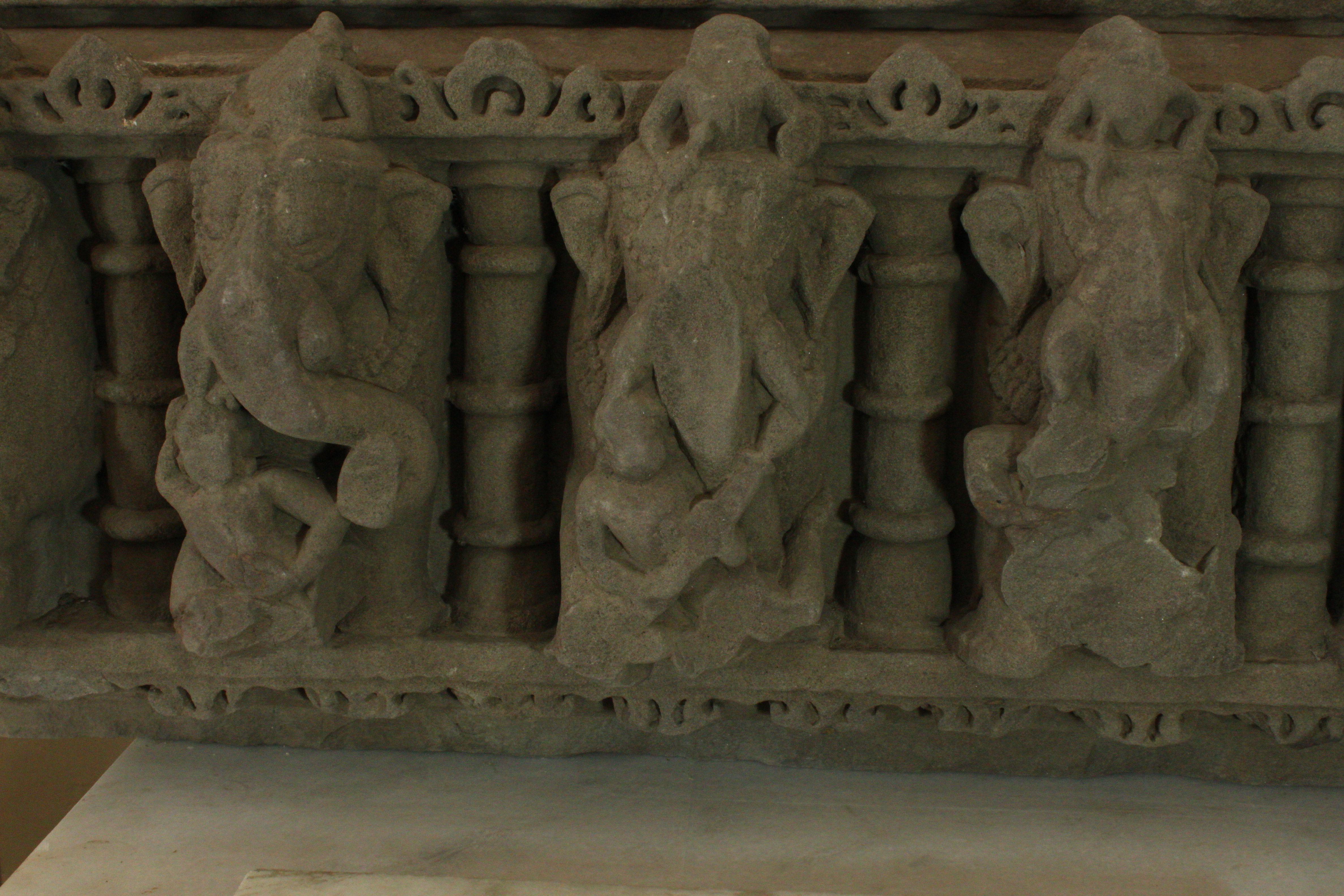 It is an architectural member of stone. For decoration is given a row of elephants with their mahawatas, and an attendant musician is sitting in front of every elephant. Each elephant is separated from other by a pillar. Upper margin is designed.