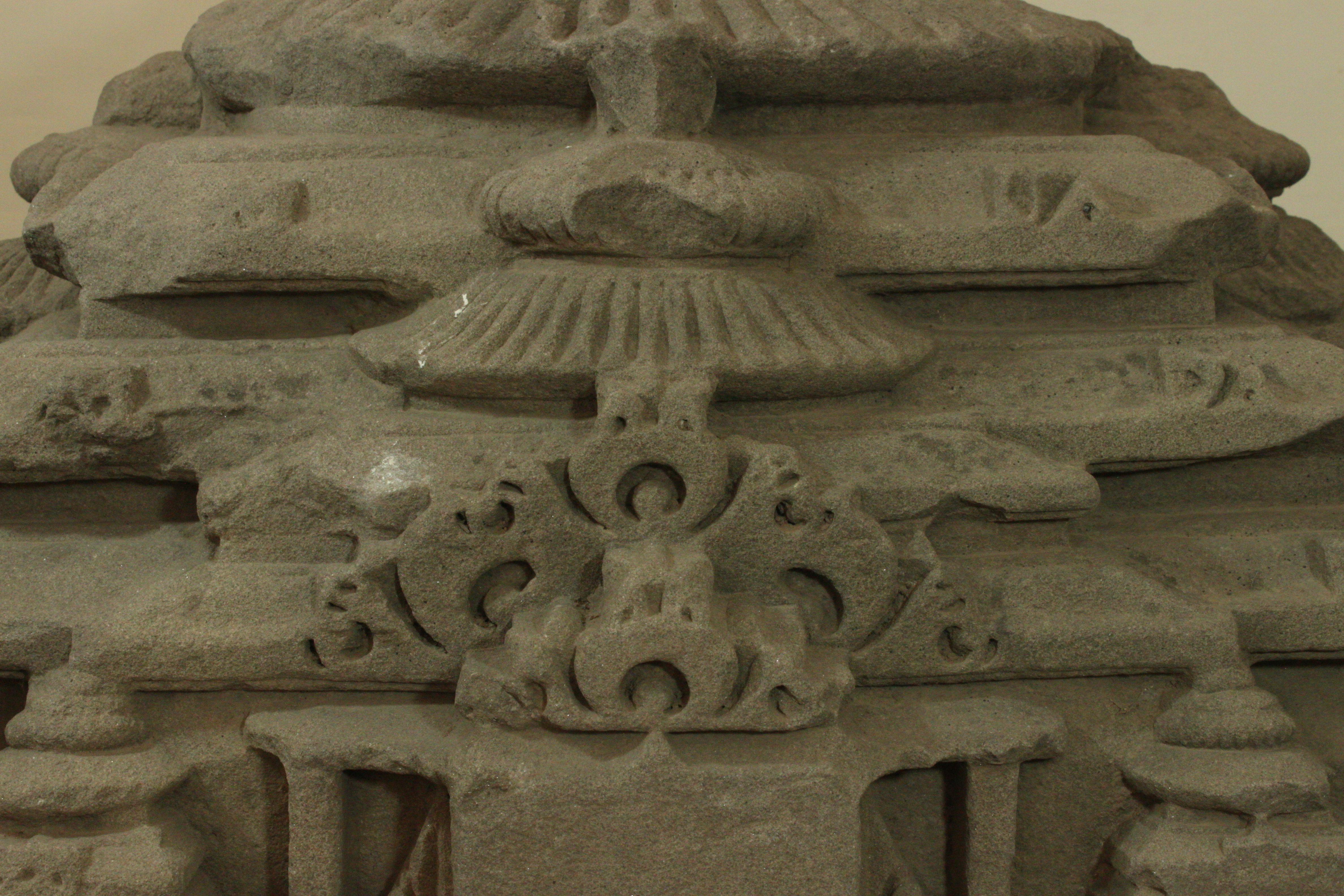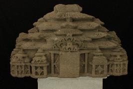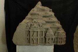 It is part of temple shikharof stone. Entire front is decorated beautifully in many different designs. Lower front is decorated in separate blocks with flower inside. Middle front looks like a flat wall.