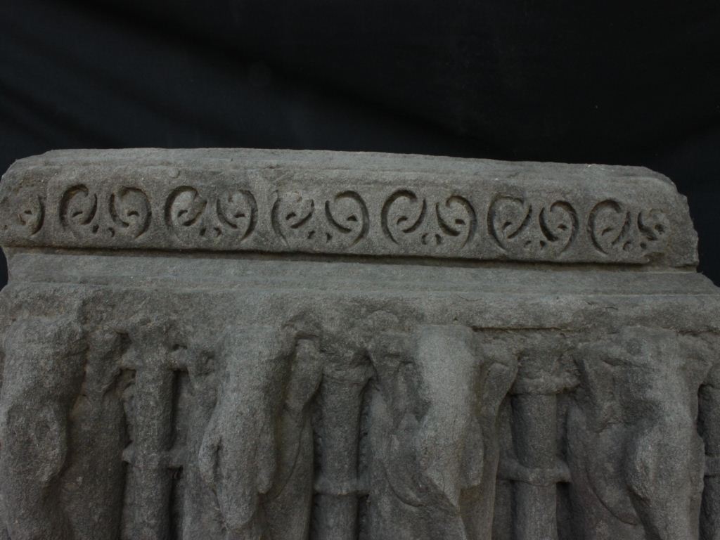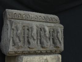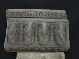 It is an architectural member of some building on which a panel of elephants is carved. All elephants are divided from one another by a pillar. Trunk, teeth and ears are visible and upper margin of the panel is decorated.