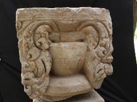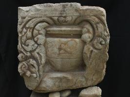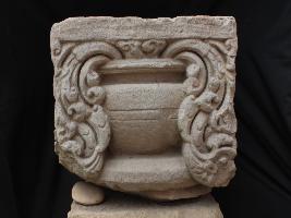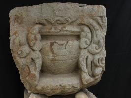 | Description / विवरण | It is an upper part of a pillar. In this part an under cut rim pot is shown with many floral plants coming out of it. There are two incised lines on the pot. |