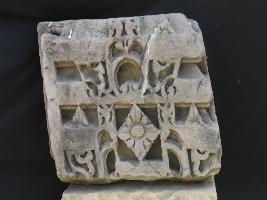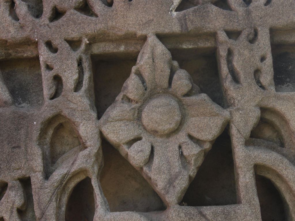 It is an architectural member of a temple. This particular part is called shikhara jali. Entire front is decorated with intricate but beautiful carving. A flower is carved in a niche in the lower middle portion.