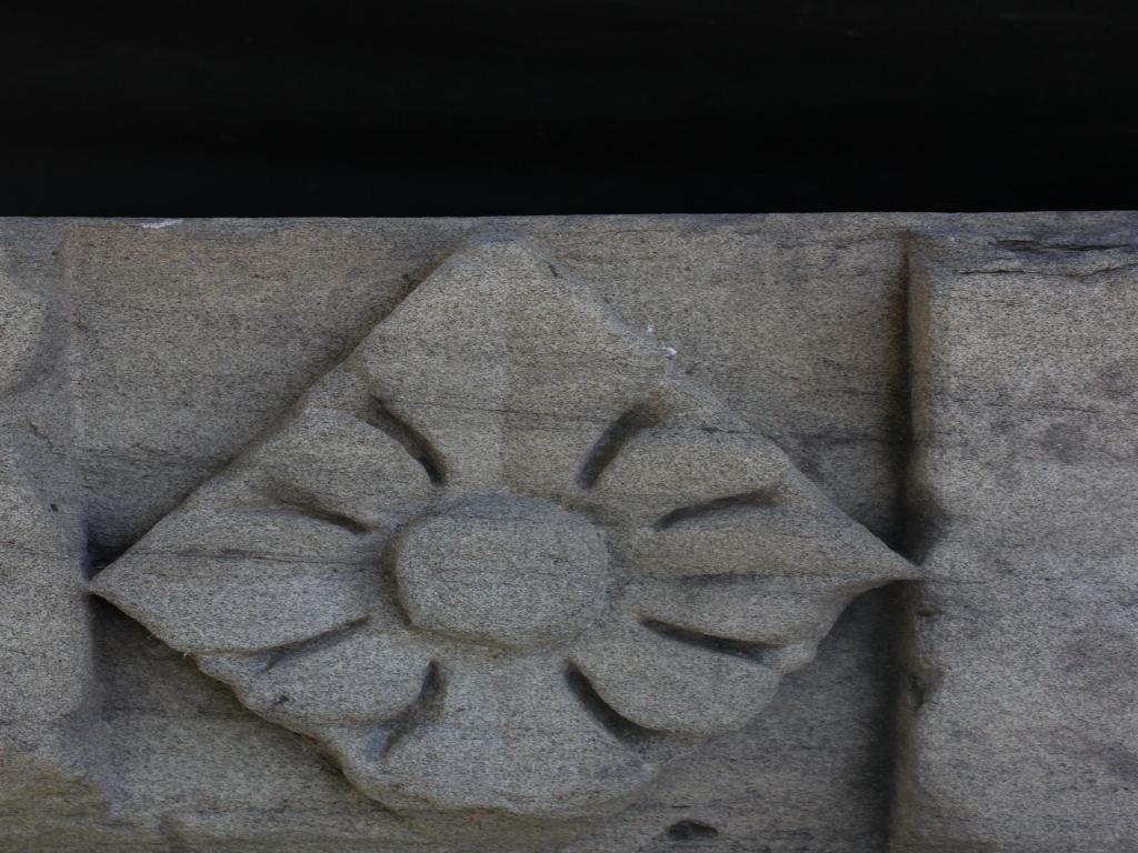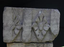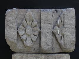 It is an architectural member of some building on which a floral panel is carved. Each flower is carved in a separate niche and a crack is present on the right portion.