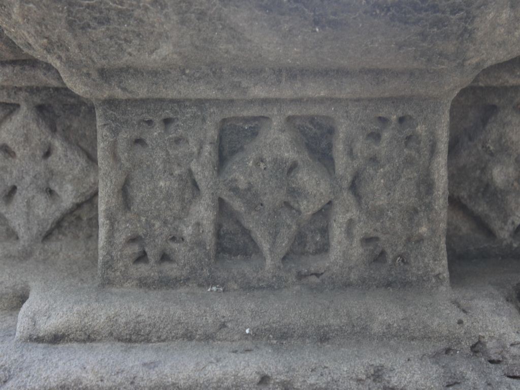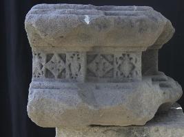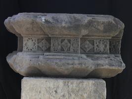 It is an architectural fragment of some building. A beautiful floral panel is carved in the middle portion horizontally. There is some variation in the flowers and all flowers are carved in separate niches.