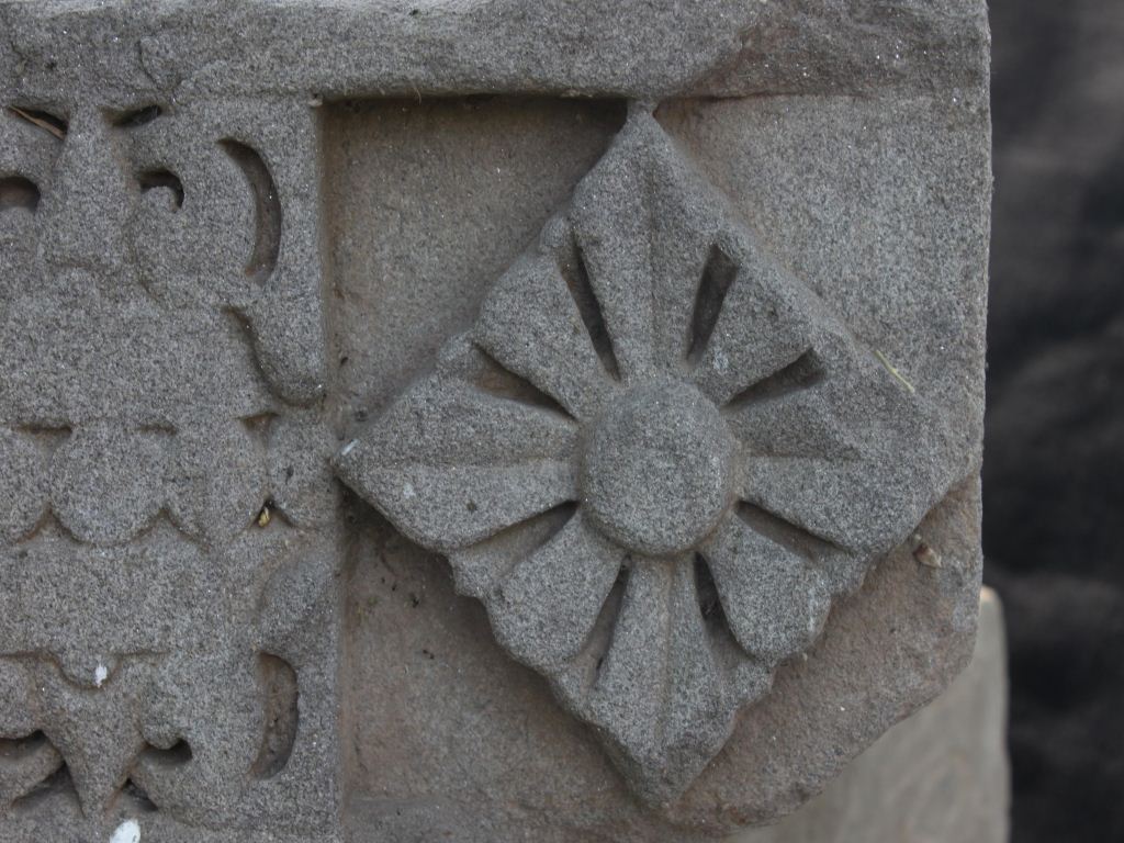 It is an architectural member of some building with floral panel on the front. Flowers are carved in separate niches and beautiful carving is done between the flowers.