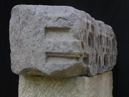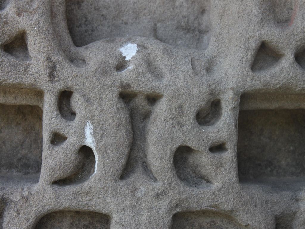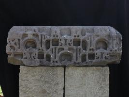 It is a part of shikhara. Intricate but beautiful carving is done on the entire front. A crack is present on the upper right corner and two deep cuts are given at left side facet.