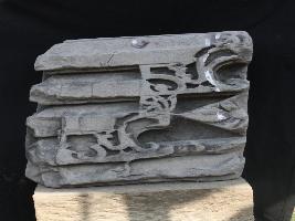 It is a part of temple shikhara. Surface is carved in steps on two sides and at some places other designs are also carved.