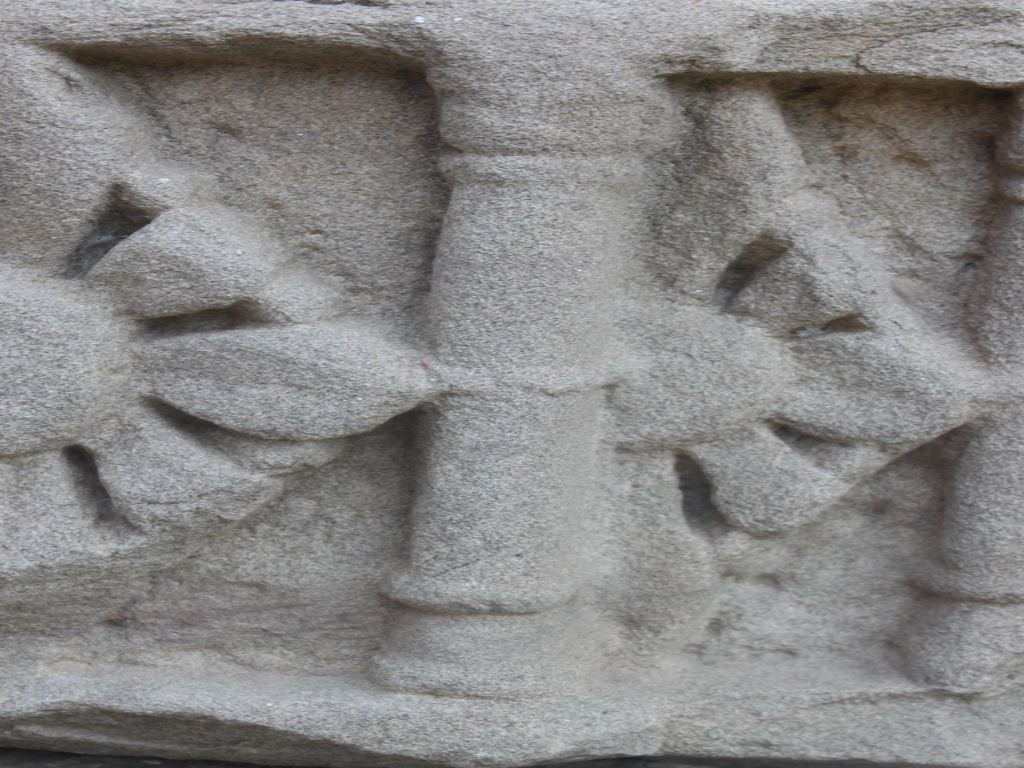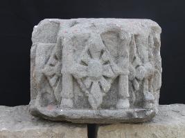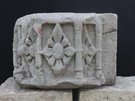 It is an architectural member of some building with a flower panel. All flowers are carved in separate niches and some flowers are half carved. There is a cut on the upper right corner.