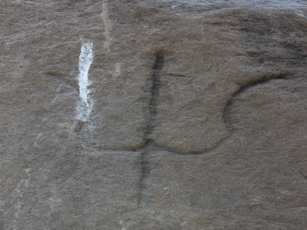 It is an architectural member on which a trident is carved. Middle point of the trident is straight but tip of other two forks is curved a bit more.