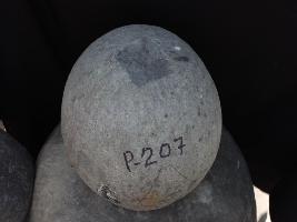 | Description / विवरण | It is a stone ball. Shape is not round properly and surface is rough and flaked at places. A rectangular chipped mark is present on the surface. |