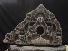 It is a miniature jali made of stone. Intricate but beautiful carving is done on the entire front. There is a big hole through the center.