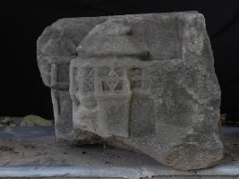 | Description / विवरण | It is a part of temple shikhara made of stone. A floral panel is carved near the upper margin. All flowers are in separate niches but some of them are blurred or damaged. |