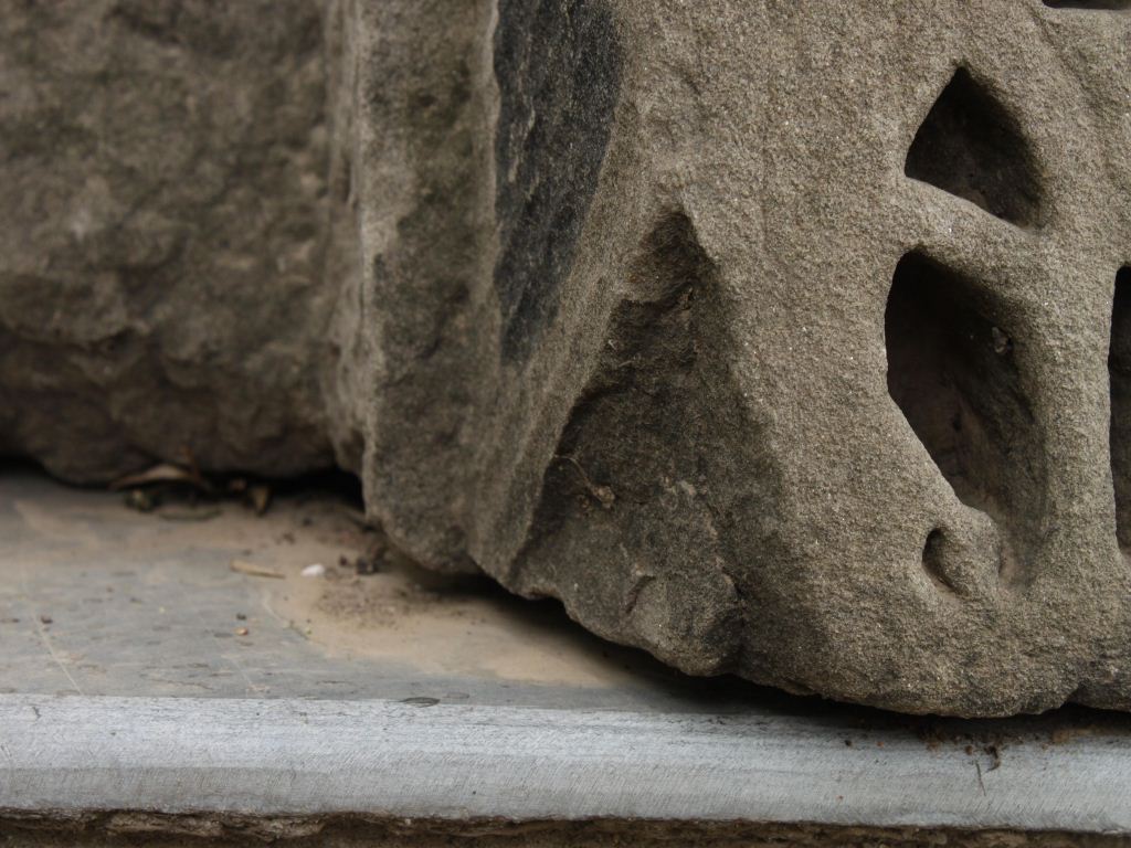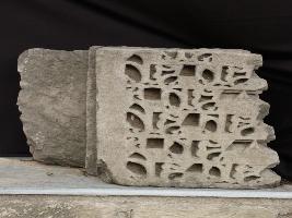 It s a broken part of temple shikhara. Front portion is deeply carved with different intricate designs. There is a pedestal like design on the right side. Back portion is bigger than front.