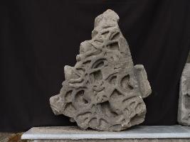 It is a broken shikhara jali. Shikhar is the top portion of any temple. Front is carved in intricate but beautiful manner. Back portion is empty except some lines and marks.