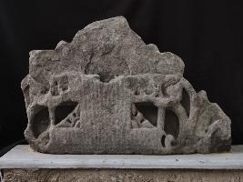 It is a broken part of shikhara jali made of stone. Shikhara is the top portion of any temple. Intricate but beautiful designs are carved on lower front portion. Nothing is special on upper portion.