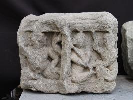 | Description / विवरण | It is an architectural member made of stone. Three human figurines are craved on the front portion. Two are in separate section on left and one is on right. Figurines are playing music and dancing. Their features are not clear. |