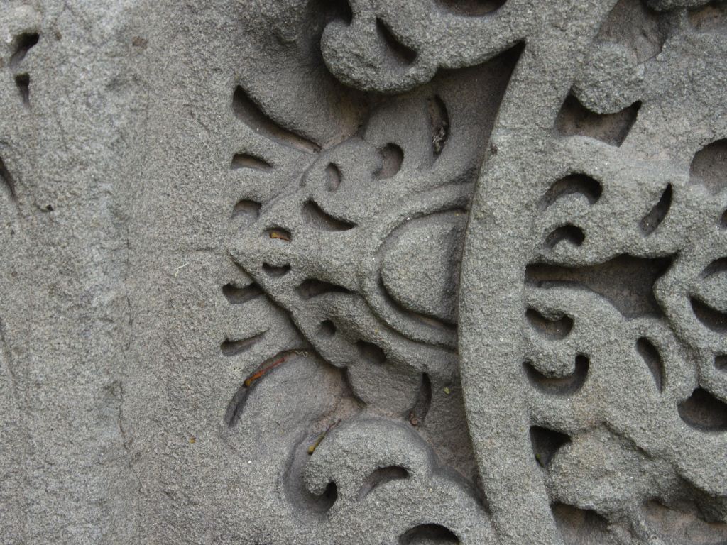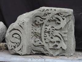 It is an architectural member of some building. A circle is carved beautifully with the intricate designs on the front lower portion. Other front portion is also decorated with beautiful designs; made of stone.