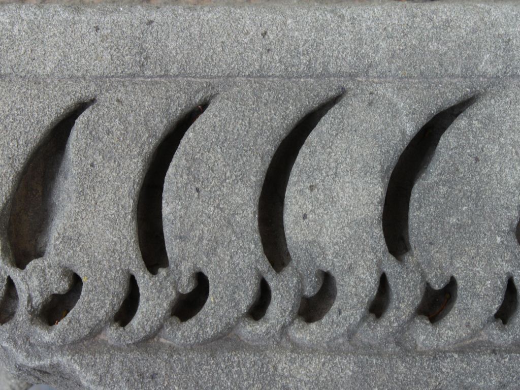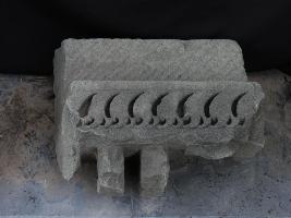 It is an architectural member of some building. Lower portion is carved with designs like sickles in a row and upper portion is carved with slant lines.
