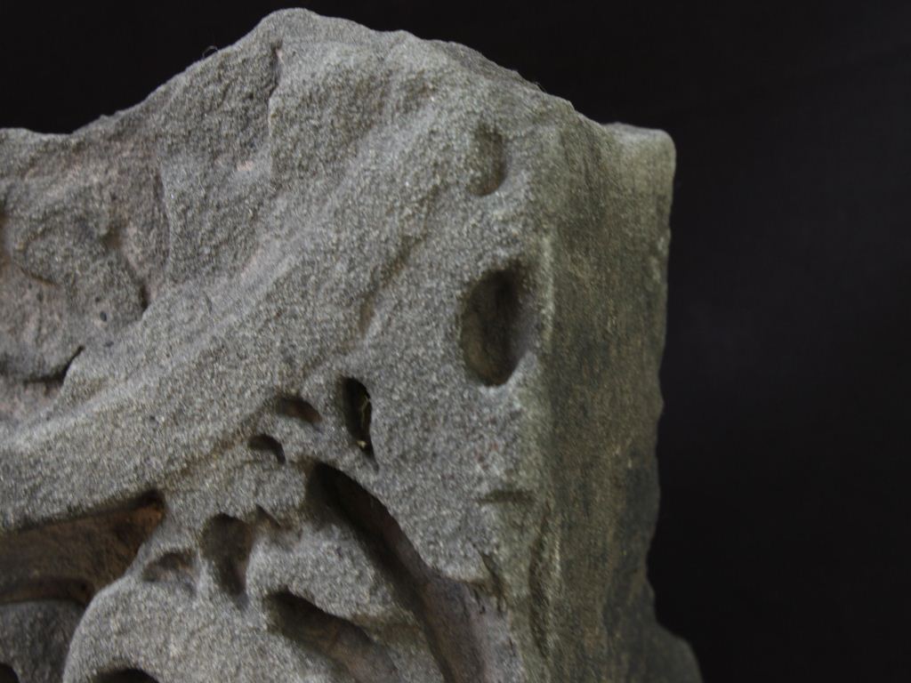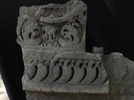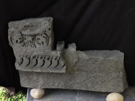 It is an architectural member of some building. Sickles like designs are carved in a row on the lower portion and upper part is decorated with many different designs.
