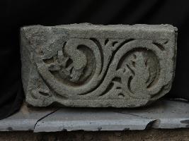 It is a decorated architectural member. Front portion is carved with beautiful designs and a line is also carved along the margin.
