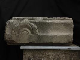 | Description / विवरण | It is a part of plinth made of stone. Front portion is carved with semi circular designs on the left side. |