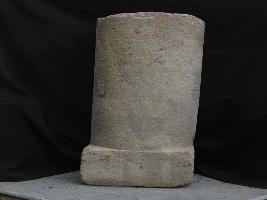 It is a lower part of a stone pillar. Shaft is round and surface is rough. Lower portion is in cubical shape and bottom is flat. There are two marks on the surface.