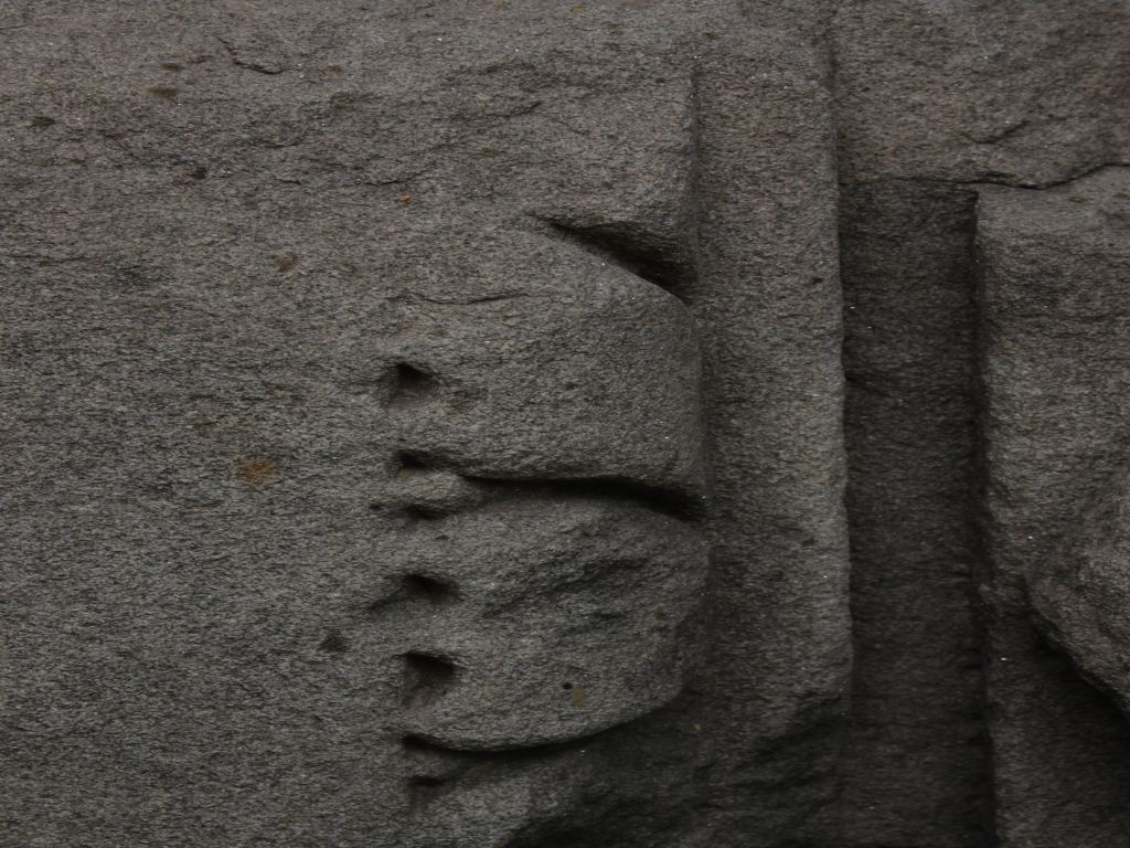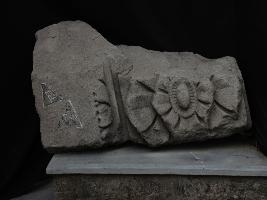 It is an architectural member made of stone. A flower panel is carved on the front. In this panel a big flower is given with two rounds of petals. Panel is damaged badly.