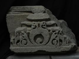 | Description / विवरण | It is a broken part of shikhara made of stone. Shikhara is the top portion of any temple. Front is carved with intricate designs but in manner. Other sides are empty and broken. |