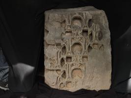 | Description / विवरण | It is a broken part of shikhara jali made of stone. Shikhara jali is the top portion of any temple. Front portion is deeply carved with intricate designs but in manner. Steps are carved on the right side. |