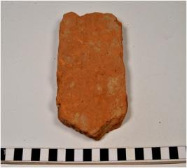 | Description / विवरण | A fragment of a terracotta tile, rectangular in shape with rough surface and medium fabric. |