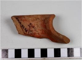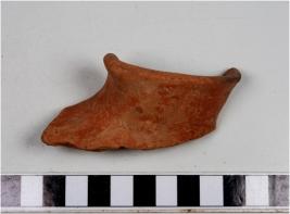 | Description / विवरण | A fragment of a channel of red ware with broad out let out flowing rim of medium fabric and fine texture. |