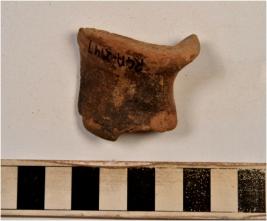 | Description / विवरण | A fragment of a channel of red ware with on even shape, treated with chocolate slip of medium fabric. |