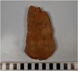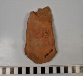 | Description / विवरण | A fragment of a terracotta tile of coarse fabric and rough surface. |