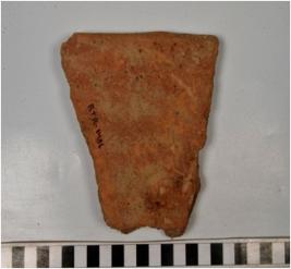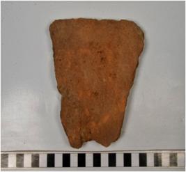 | Description / विवरण | A fragment of a terracotta tile of coarse fabric and rough surface. |