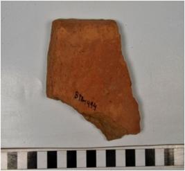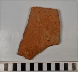| Description / विवरण | A fragment of a terracotta tile of coarse fabric and rough surface. |