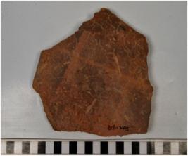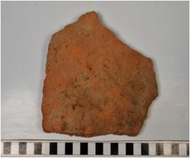 | Description / विवरण | A fragment of a terracotta tile of coarse fabric and rough surface. |