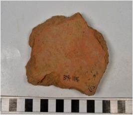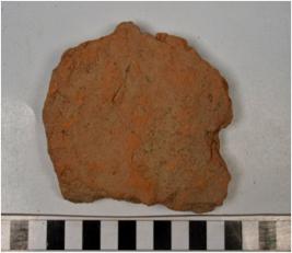 | Description / विवरण | A fragment of a terracotta tile of coarse fabric and rough surface. |