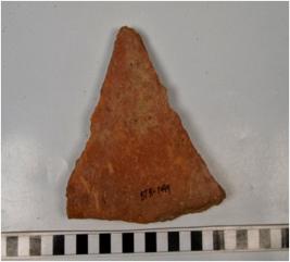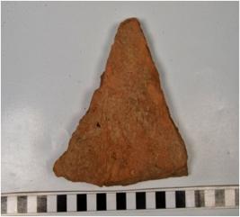 | Description / विवरण | A fragment of a terracotta tile of coarse fabric and rough surface. |
