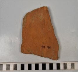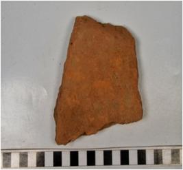 | Description / विवरण | A fragment of a terracotta tile of coarse fabric and rough surface. |