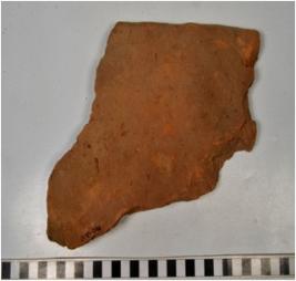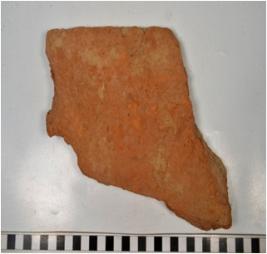 | Description / विवरण | A fragment of a terracotta tile of coarse fabric and rough surface. |
