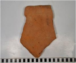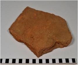 | Description / विवरण | A fragment of a terracotta tile of coarse fabric and rough surface. |