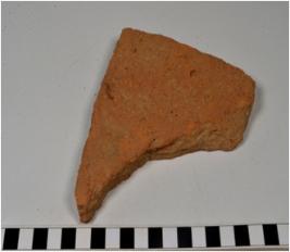 | Description / विवरण | A fragment of a terracotta tile, rough surface of coarse fabric. |