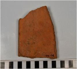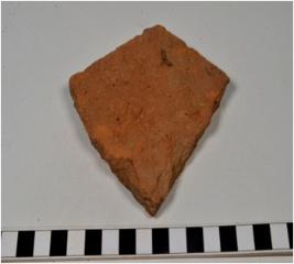 | Description / विवरण | A fragment of a terracotta tile, rough surface of coarse fabric. |